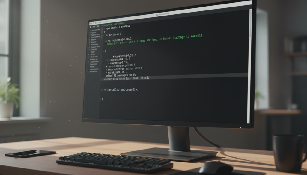 Now that we have our project initialized, it is time to install Express. In your terminal, type: npm install express. You will see a new folder appear called node_modules. Do not worry about what is inside there for now; it is just a bunch of code that Express needs to function. Think of it as the engine parts for your car. You do not need to know how every screw works to drive the vehicle. Once that is done, create a new file in your main folder and name it app.js. This is where the magic happens.
