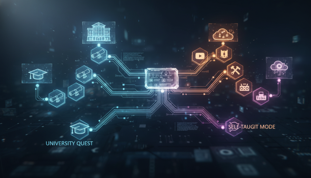 Let’s be real for a second. You are staring at a tuition bill that looks like a phone number, wondering if you really need to spend four years studying algorithms from the 1990s just to build apps in 2026. It is the big question haunting every tech-interested Gen Z kid right now. Do you take the traditional path, rack up debt, and hope for a job? Or do you go rogue, learn from YouTube, and hack your way into the industry?