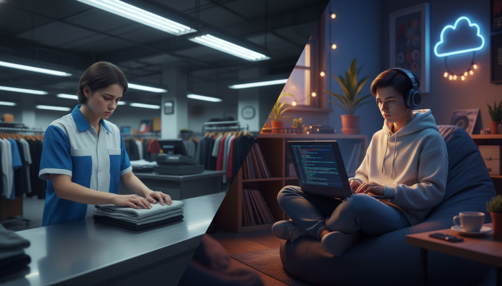 Let me paint you a picture. It is 2015. I am standing in the middle of a clothing store that smells vaguely of cardboard and despair. A customer is yelling at me because her coupon expired three years ago, and my manager is asking why the denim wall is not color-coordinated by shade of indigo. In that moment, I realized something profound. I did not want to be an NPC in my own life anymore. I wanted to be the developer who built the game.